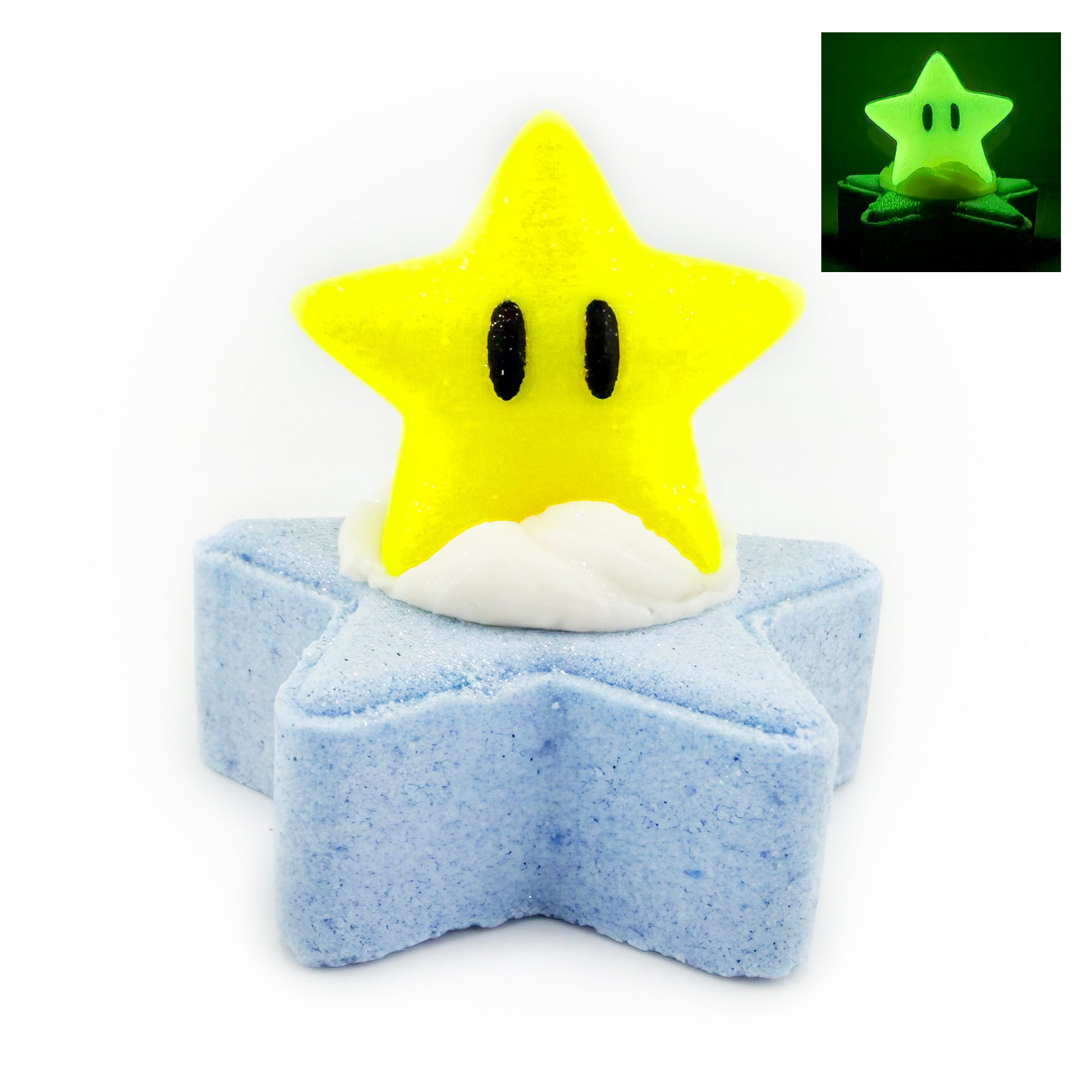 baking soda, citric acid, cocoa & shea butter blend, natural fragrance oil, polysorbate 80, sea salt, cream of tartar, cornstarch, cocamidopropyl betaine (natural & gentle coconut derived surfactant), sodium lauryl sulfoacetate (natural & gentle coconut derived surfactant), coconut milk powder, kaolin clay, blue spirulina powder, biodegradable glitter
