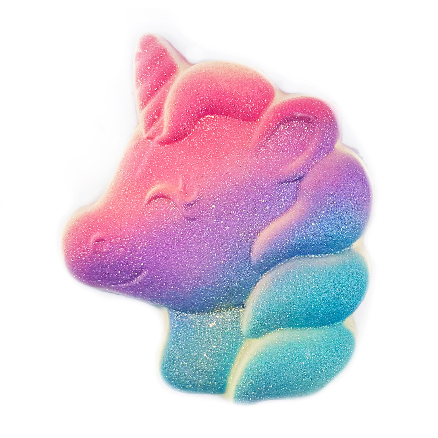 Transform bath time into an enchanted adventure! This dreamy unicorn bath bomb is airbrushed in a stunning gradient of pink, purple and turquoise, with a sparkling glittery finish. Unicorn prize inside!